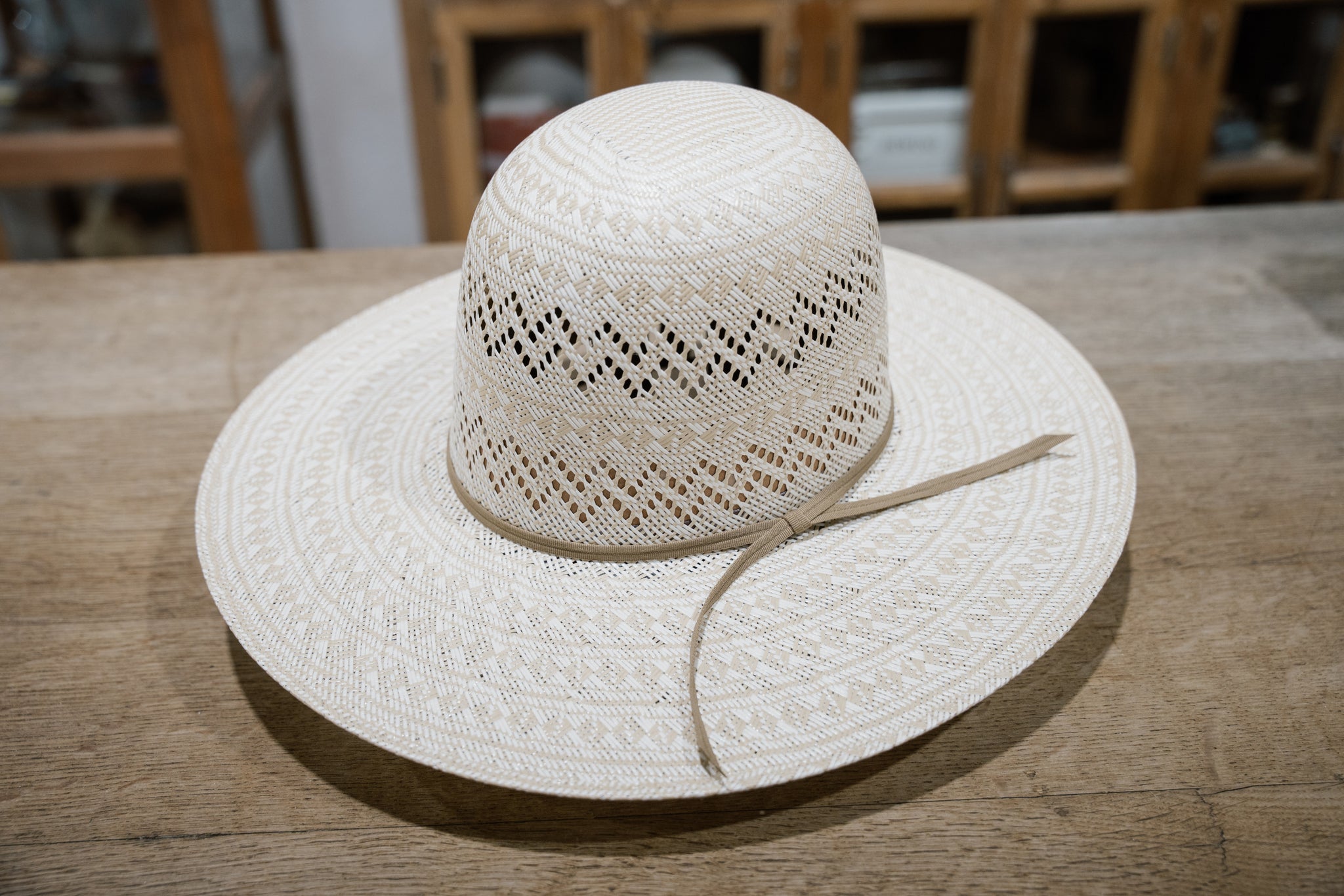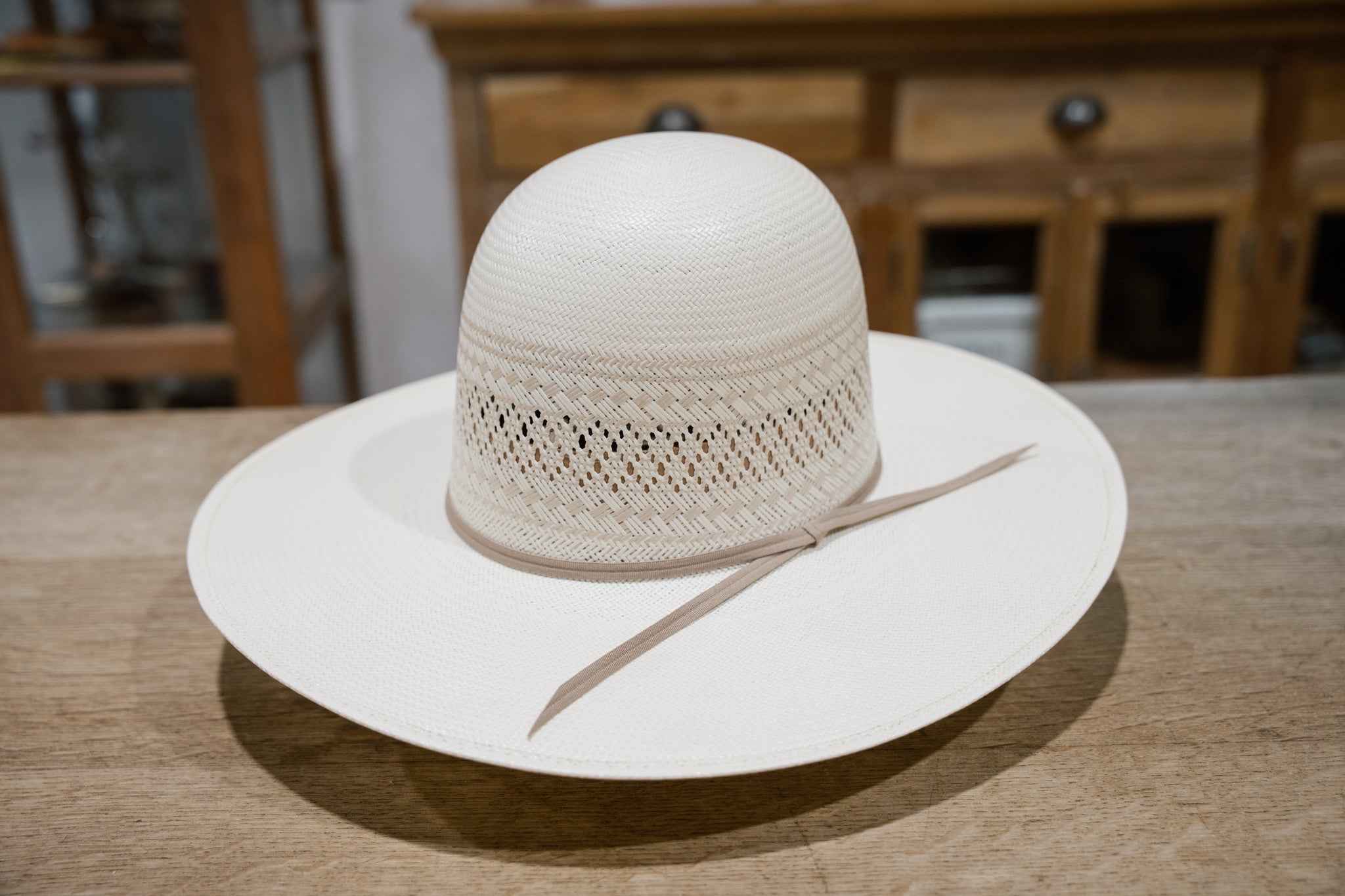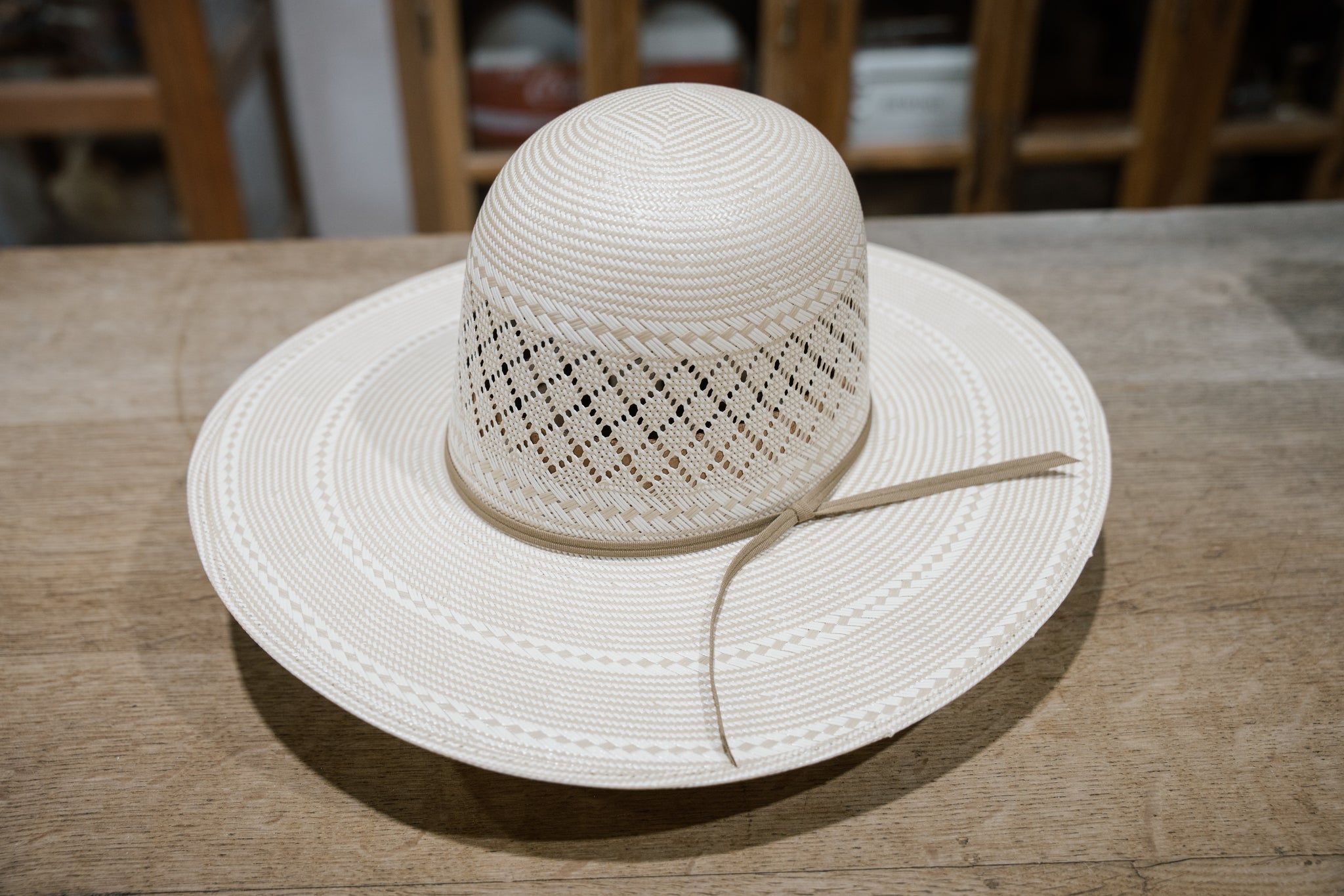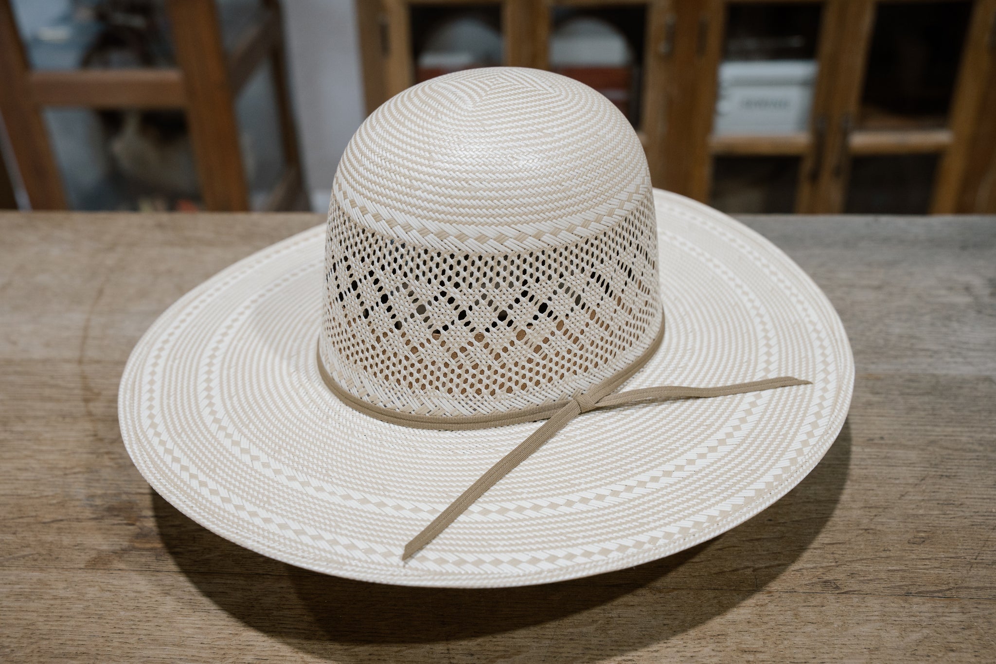Double R Brand Straw. Top Quality Two-Tone Panama. Leather sweat liners. Designed in Texas, made in Mexico.