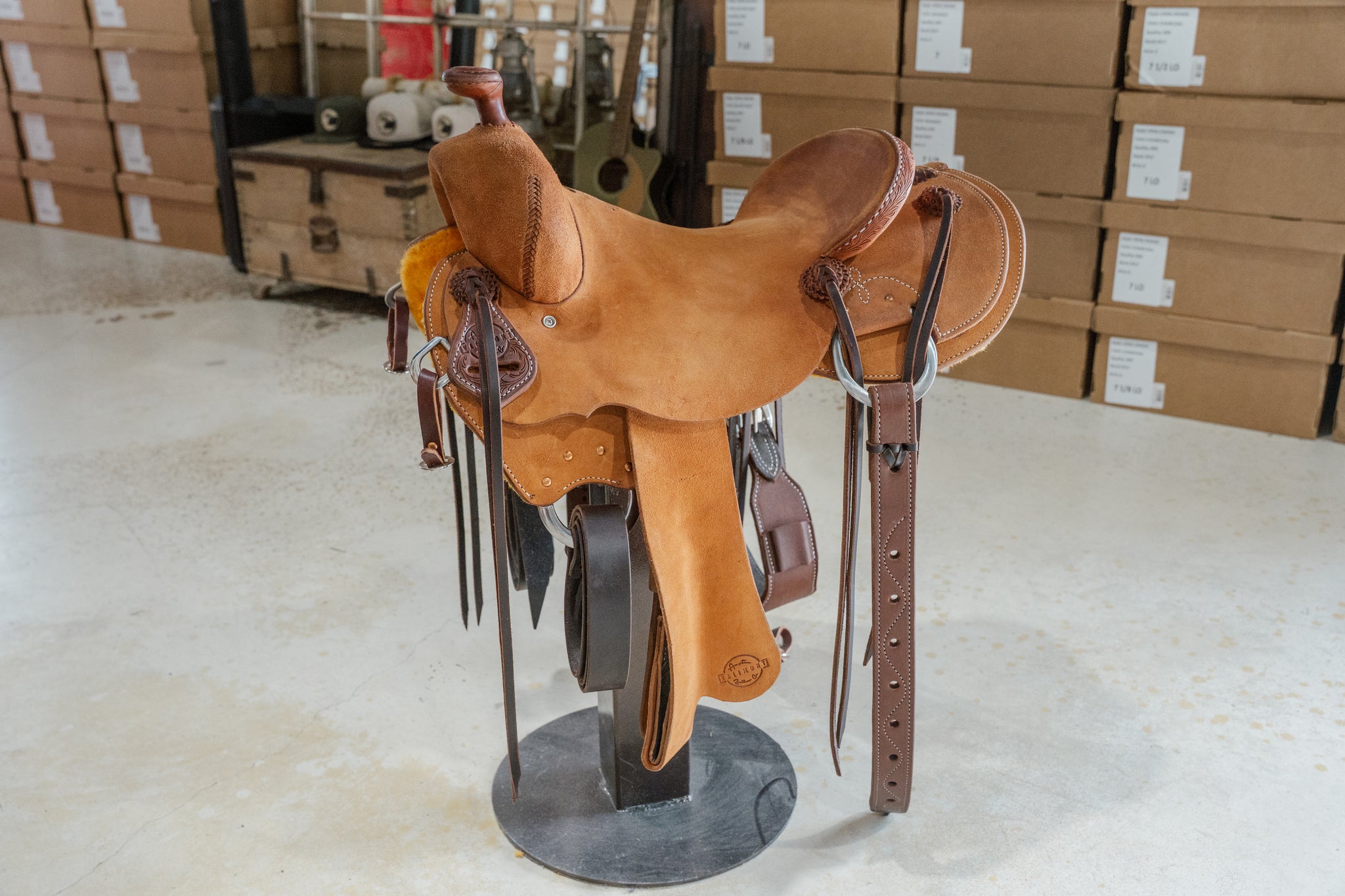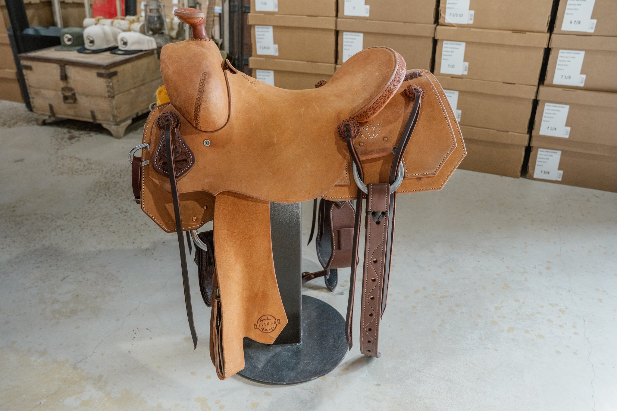 15.5" Seat, 13" wide swells. 6.5" gullet x 8" tall. 2.5" Horn, 2.5" Cantle.